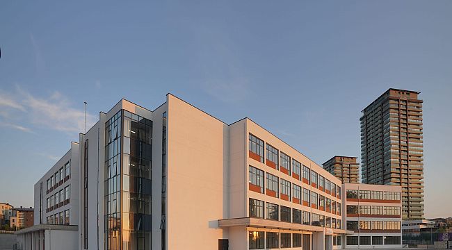 İnsan dolaşımı ve ulaşımının öncelikli tutulduğu tasarımda mimarlar, farklı fonksiyon ve yükseklik ihtiyaçlarını avlu etrafında kurgulamış; yarı açık arkad ile zemin ve 1. kata bağlantı kurulmuş. Yapı, güney yönelimli ve korunaklı bir avlu çevresinde planlanmış. Derslikler, spor salonu ve konferans salonu blokları, bağımsız olarak avluya açılıyor ve kuvvetli sirkülasyon bağlantıları ile bir arada çalışıyor. Avlu, spor salonu çok amaçlı salon ile yemekhane-kantin gibi sosyal alanlar, derslikler, laboratuvar ve bilgisayar odaları gibi uygulama amaçlı mekânlar, eğitimcilerin, öğrencilerin ve bu yapıyı kullanacak olan diğer kullanıcıların ihtiyaçları göz önünde bulundurularak tasarlandı