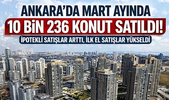Gayrimenkul PR 'İkinci el piyasası güçlü kaldı'Ankara'nın öde gelen gayrimenkul şirketi Gayrimenkul PR mart verilerini şu şekilde yorumladı;'Ankara’da talep tamamen durmadı; aksine doğru fiyatlanan, iyi anlatılan ve alıcıya güven veren konutların hızlı şekilde karşılık buldu. Ankara’da artık yalnızca “ilan vermek” satış için yeterli değil. Alıcılar doğru fiyatlandırmaya önem veriyor. Bu nedenle satılık gayrimenkulü olan mülk sahipleri, doğru fiyatlama ve güçlü tanıtım diliyle hareket ettiğinde daha nitelikli alıcıya ulaşabiliyor. Satış türleriİpotekli Satışlar: 1.324 Diğer Satışlar: 9.427 (Peşin ve senetli satışlar piyasanın ana lokomotifi oldu).İlk El (Sıfır) Konut Satışları: 2.752İkinci El Konut Satışları: 7.999Ankara Mart ayı ilçe düzeyinde konut satış sayıları1-Çankaya — 1.6932-Keçiören — 1.3633-Sincan — 1.3304-Mamak — 1.2875-Etimesgut — 1.0176-Yenimahalle — 9057-Altındağ — 7028-Gölbaşı — 4459-Çubuk — 35110-Pursaklar — 31611-Polatlı — 26012-Akyurt — 16813-Kahramankazan — 10314-Beypazarı — 7515-Elmadağ — 5516-Güdül — 4717-Kızılcahamam — 3718-Şereflikoçhisar — 3719-Haymana — 2220-Nallıhan — 721-Ayaş — 622-Kalecik — 523-Bala — 324-Çamlıdere — 2