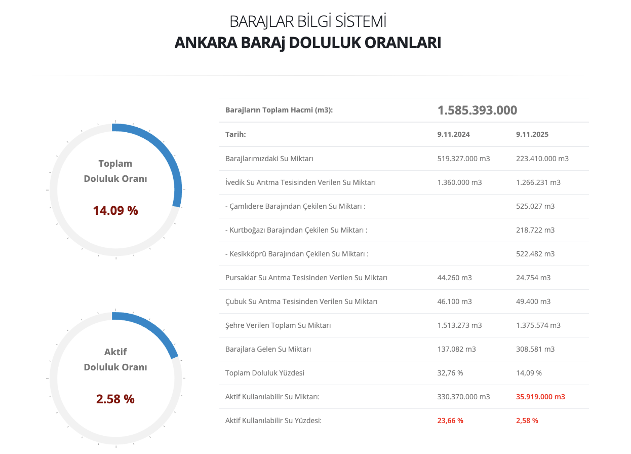 Uzmanlar, sonbahar aylarının yağışsız geçmesi ve sıcaklıkların mevsim normallerinin üzerinde seyretmesi nedeniyle, barajlardaki su seviyesinin hızla gerilediğini belirtiyor. Ankara adeta yağmura hasret kaldı.