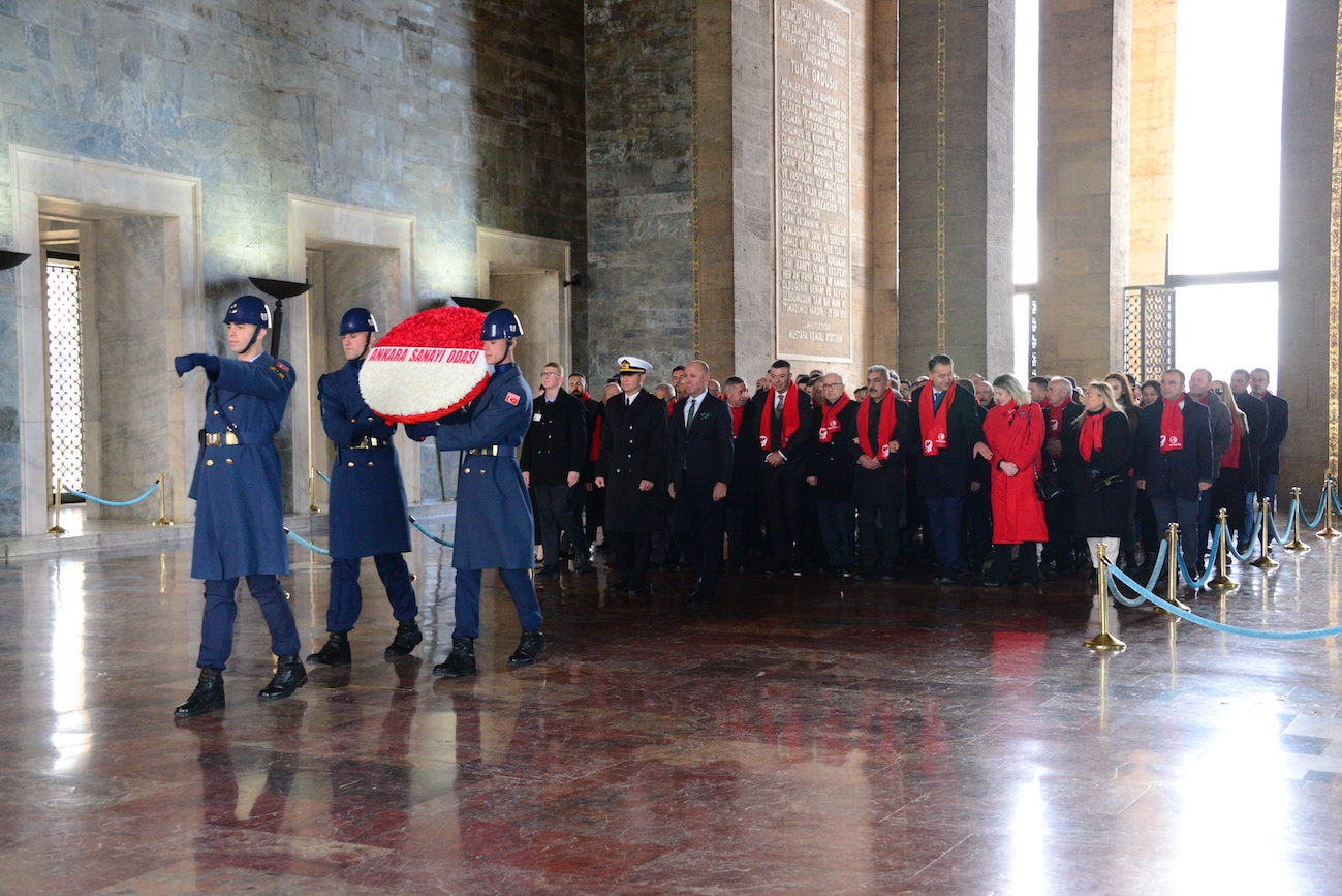 Ankara Sanayi Odası heyeti, Aslanlı Yol'dan mozoleye gelerek çelenk bıraktı ve Atatürk’ün manevi huzurunda saygı duruşunda bulundu. Daha sonra Misak-ı Milli Kulesi'ne geçerek Anıtkabir Özel Defterini de imzalayan ASO Başkanı Seyit Ardıç, deftere şunları yazdı:“Aziz Atatürk, Milli Mücadele’nin karargahı başkentimizde, ankara Sanayi Odası’nın yeni seçilen yönetimi olarak heyecan ve gururla huzurundayız. Türkiye Cumhuriyeti’nde sanayileşme hamlesi bundan 100 yıl önce “her fabrika bir kaledir” sözlerinizle başlamıştı. Biz de bu vizyon doğrultusunda yeni kaleler inşa etmek için yola çıktık. Bu yeni yolculuğumuza komite ve meclisimize ilk kez daha çok genç ve kadın sanayicimizin katılımıyla başladık. Odamıza bağlı 9 bin iş insanımızla hedefimiz; Cumhuriyetimizin 100. yılında Ankara’yı sanayinin de başkenti yapmaktır. Türkiye’nin üretim, ihracat, istihdam ve büyümesine katkı sağlayarak zat-ı alinizin hedef olarak belirttiği “muasır medeniyet” seviyesine erişmek için elimizden gelen gayreti göstereceğimize söz veriyoruz.Hatıranız önünde saygıyla eğiliyoruz