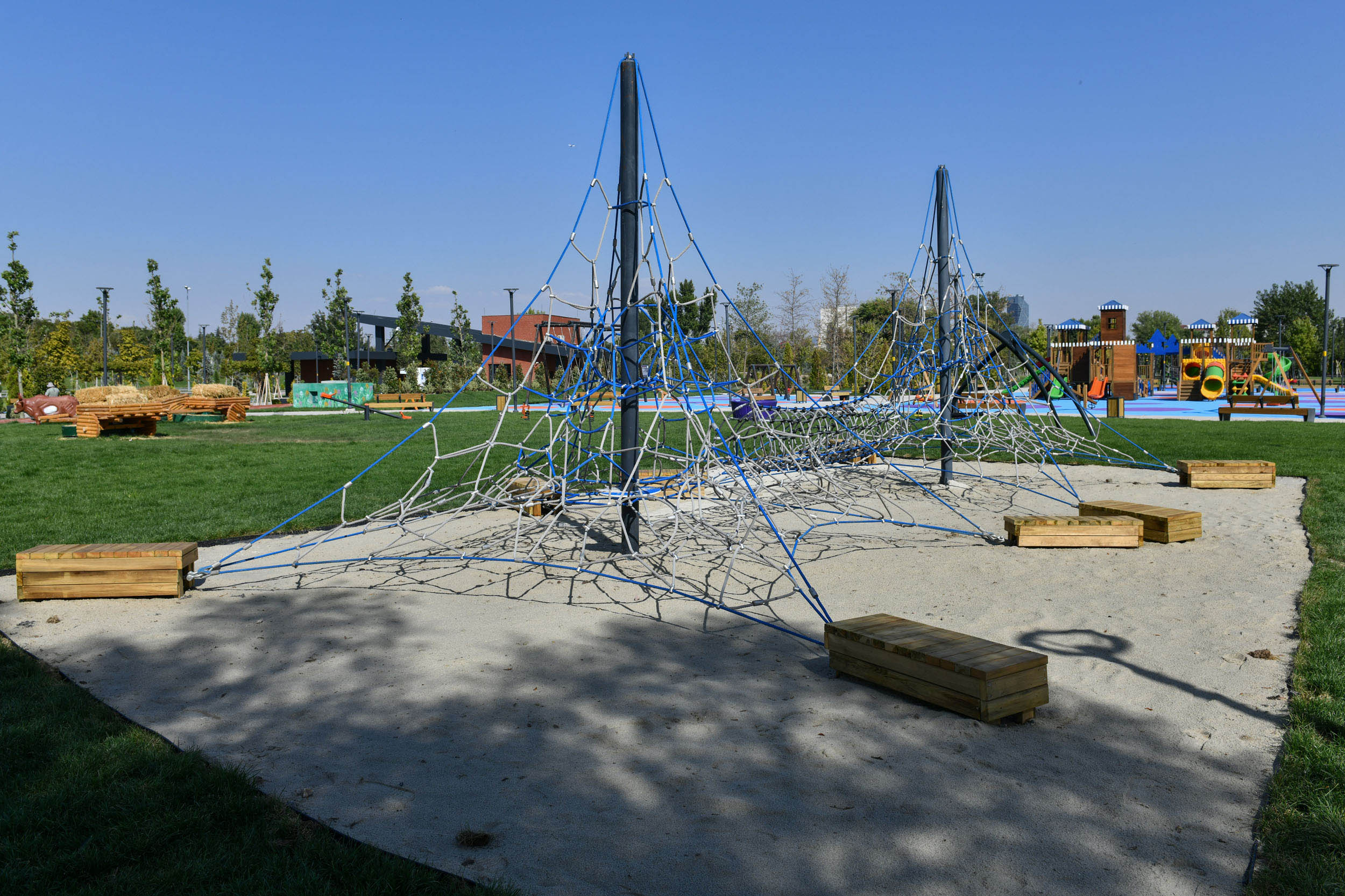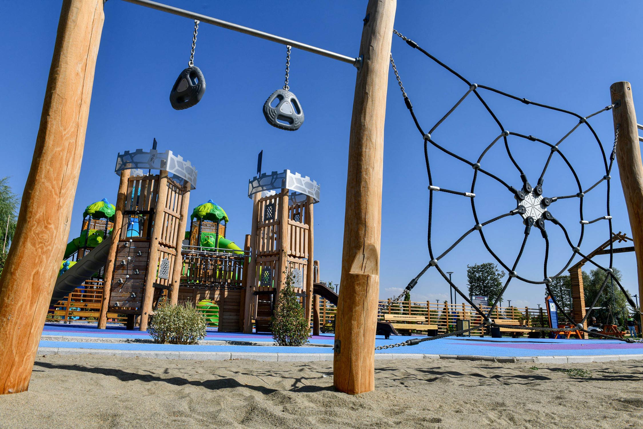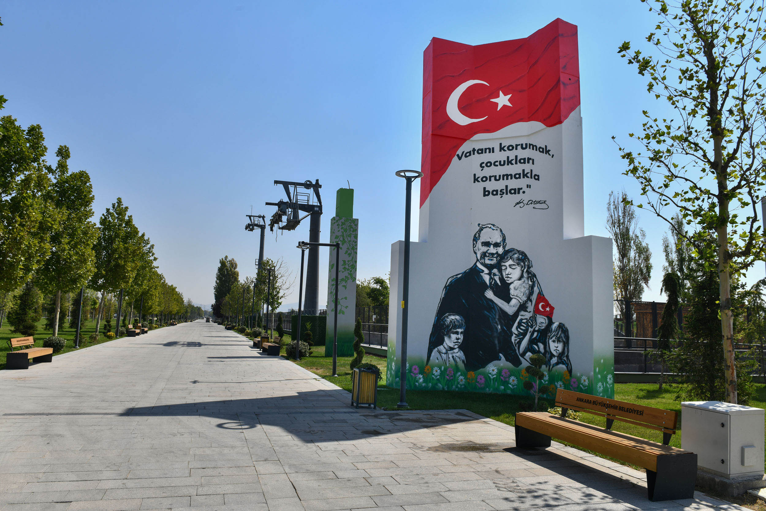Ankara, Gazi Mustafa Kemal Atatürk’ün mirası Atatürk Orman Çiftliği’nde yepyeni bir projeye kavuştu. Ankara Büyükşehir Belediyesi’nin Atatürk Orman Çiftliği arazisinde hayata geçirdiği 940 bin metrekarelik Atatürk Çocukları Doğal Yaşam Parkı kapılarını açtı. Açılışta ABB Başkanı Mansur Yavaş da vatandaşlarla buluşarak parkı gezdi ve projeyi tanıttı.ABB, AOÇ’nin tarihi ve doğal dokusunu koruyarak hayata geçirdiği projede, 400 bin metrekare çim alan, 250 bin çalı ve 17 bin ağacı toprakla buluşturduToplamda 940 bin metrekarelik alanı kapsayan park, 3 etaptan oluşuyor. Yaklaşık 800 bin metrekarelik 2. ve 3. etapta, hayvanlar için doğal yaşam alanları, meyve bahçeleri, kafe ve büfeler, etkinlik alanları, dumansız piknik alanları, çocuk ve gençlere yönelik oyun alanları, dinlenme bölgeleri, bisiklet ve yürüyüş yolları, etkinlik çayırları, otopark, büyük çim tepeler, koku ve tıbbi-aromatik bahçeler, Dijital Hayvanat Bahçesi ile konser, sergi, şenlik ve etkinlik alanları yer alıyor. Ayrıca park içerisinde, Gazi Mustafa Kemal Atatürk ve Atatürk Orman Çiftliği’ne ait fotoğrafların sergilendiği alanlarla ABB, vatandaşlara hem zaman yolculuğu yaptırıyor hem de AOÇ’nin tarihî önemini vurguluyor.Farklı yaş gruplarına yönelik oyun alanlarıFarklı yaş gruplarına yönelik olarak planlanan oyun alanları sayesinde park, aynı zamanda dev bir eğlence merkezi olacak. Oyun alanlarında, ahşap oyun parkurları, mini zipline, mini golf, ayak tenisi, plaj voleybolu, üç potalı basketbol sahaları, yer satrançları, su oyunları alanı, kaykay alanı, duyusal park (otizmli çocuklar için), engelsiz park, büyük salıncaklar, bilim oyuncakları alanı, hobbit evleri, dev oyun grupları ve çim tepe oyun alanları yer alıyor