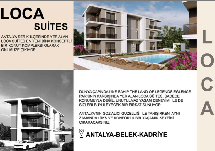Tatil ve turizm merkezlerinden olan Antalya’da Dünya çapında tanınan eğlence parkı olan Land Of Legends’e yakın konumda butik site içerisinde lüks konseptte 2+1 inşa edilen Loca Suites’in inşaatı başladı