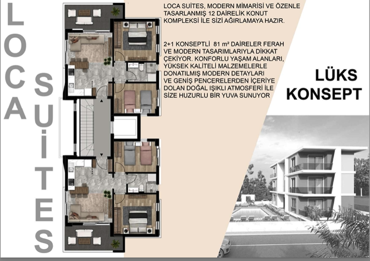 Gayrimenkul yatırımlarının cazibe merkezlerinden olan Antalya Serik bölgesinde inşaatı başlayan proje 12 özel daire 81 m2 olarak yapılacak. Progen firması güvenciyle inşa edilen sitenin konumu ve yapısı ile kullanıcılarına keyifli ve konforlu bir yaşam sunacakFerah ve modern tasarımlar ile dikkat çeken projede yüksek kalite inşaat malzemesi kullanıyor. Geniş pencereleriyle sürekli aydınlık ve ferah ortam sunacak olan konutlar site içerisinde 7/24 teknik ve fiziki güvenlik sunacakProjenin müteahhitliğini yapan ve Ankara’da çok sayıda konut projesini başarıyla tamamlayan inşaat mühendisi Abdulkadir Evirgen, ‘Ülkemizin cazibe merkezlerinden olan Antalya Serik ilçesinde denize 3 km mesafede inşa ettiğimiz projede ayrıca 4 özel bahçe konsepti daire olacak’ dediAntalya’dan konut almak isteyen yatırımcılara seslenen Evirgen, projeden satışa başladıklarını belirterek, ‘sitemizde oturumlar Mayıs 2024’te başlayacak. Projeden satın almak isteyenler ve dört mevsim yaşam konforu arayanlar için Loca Suites fırsatlar barındırıyor’ açıklamasını yaptıBilgi: 0 532 212 36 14