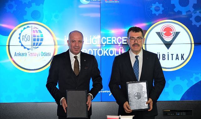 Ankara Sanayi Odası Başkanı Seyit Ardıç ile TÜBİTAK Başkanı Prof. Dr. Hasan Mandal, ASO üyesi firmaların dijital dönüşüm ve yeşil dönüşüm için TÜBİTAK desteklerinden daha etkin yararlanmasını sağlamak amacıyla “İş Birliği Çerçeve Protokolü” imzaladı