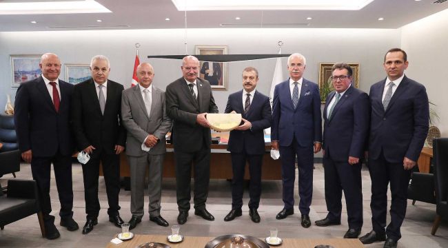 ATO Başkanı Gürsel Baran, Yönetim Kurulu Üyeleriyle birlikte Merkez Bankası Başkanı Şahap Kavcıoğlu’nu makamında ziyaret etti. Ziyarette, Ankara Ticaret Odası’nın Ankara ve Türkiye ekonomisine yönelik yaptığı çalışmalar hakkında Başkan Kavcıoğlu’na bilgi veren Baran, pandemi sürecinde yaptıkları çalışmaları da anlattı