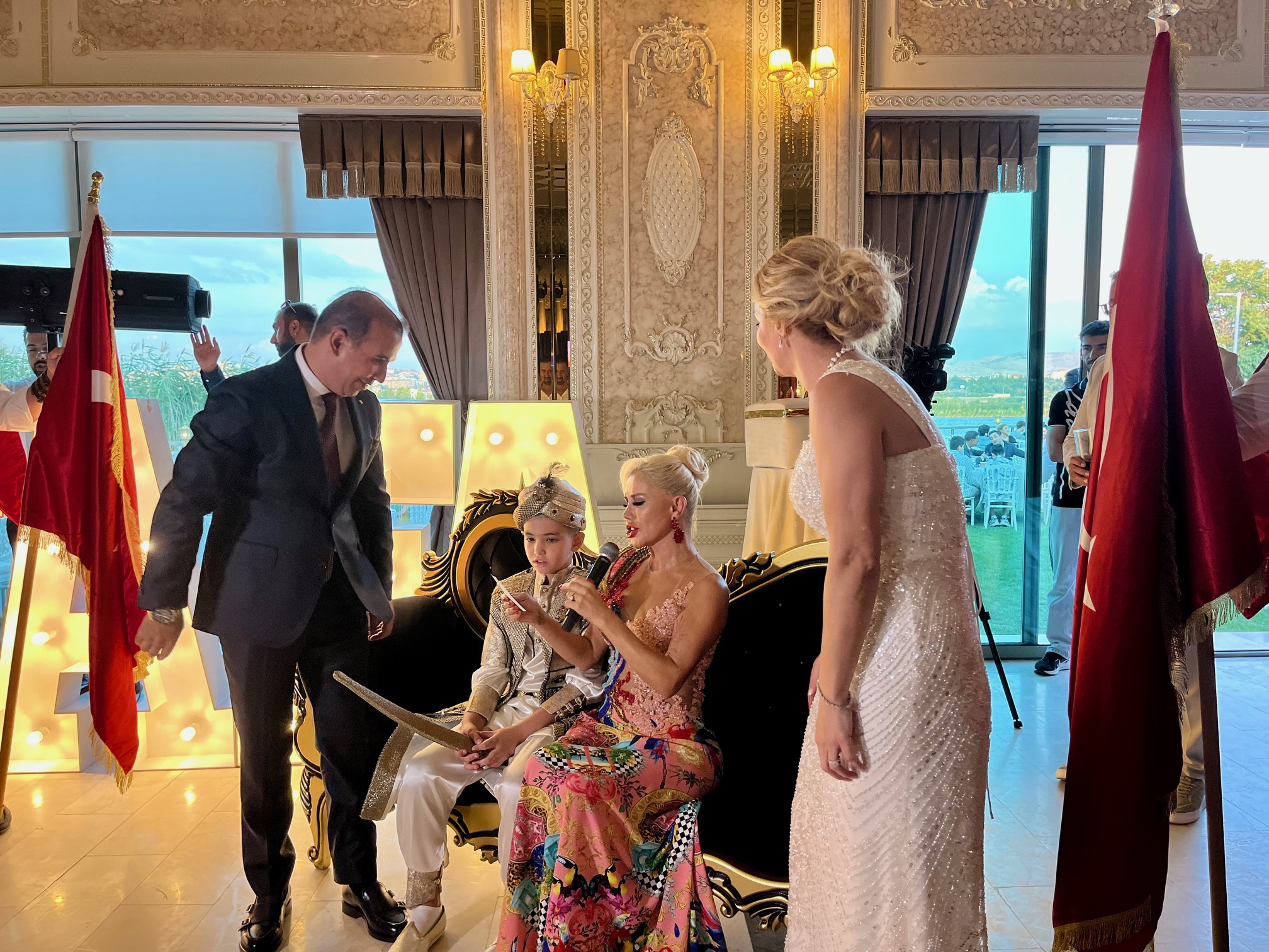 Ankaralı inşaat firması Hann Yapı'nın sahibi iş insanı Fecri Aslan oğlu Mustafa için görkemli bir sünnet düğünü düzenledi. İş ve sanat dünyasından birçok tanınmış ismi bir araya getiren bu özel gece, Gölbaşı Çırağan Sarayı'nda gerçekleşti.