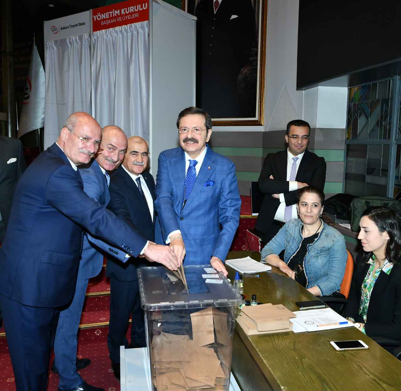 ATO’nun 8 Kasım 2022 Salı günü yapılan ilk aşama seçimlerinde, 160 bin üyesini temsil eden 192’i meclis üyesi olmak üzere toplam 452 komite üyesi seçilmişti. Seçim sonuçlarının kesinleşmesinin ardından ATO Meclis Üyeleri’nin Yönetim Kurulu Başkanı, Yönetim Kurulu asil ve yedek üyeleri, Disiplin Kurulu’nun asil ve yedek üyeleri ile Türkiye Odalar ve Borsalar Birliği Genel Kurulu Delegeleri’ni seçmek için, ATO’da ikinci kez sandık kuruldu. Çankaya 4. İlçe Seçim Kurulu Başkanlığı’nın denetimindeki seçimler, ATO Meclis Salonu’nda yapıldı. Meclis üyeleri sabah saat 09.00’dan itibaren oy kullanmaya başladı. Seçimlerde Yönetim Kurulu Başkanlığı için tek aday olan Gürsel Baran, oy kullanmaya Türkiye Odalar ve Borsalar Birliği (TOBB) Başkanı Rifat Hisarcıklıoğlu ve seçimlere kadar ATO’da Meclis Başkanlığı görevini yürüten Mustafa Deryal ile birlikte geldi. Baran ve Hisarcıklıoğlu, oy zarflarını sandığa birlikte attılarSaat 13.00 itibariyle sandıklar kapatıldı ve oylar sayılmaya başlandı. Gürsel Baran’ın tek listeyle aday olduğu seçimde, ATO’nun 192 meclis üyesinden 187’si oy kullandı, 1 oyun geçersiz sayıldığı seçimlerde geçerli olan 186 oyun 185’ini alan Baran, Yönetim Kurulu Başkanı olarak seçildi.Seçim sonuçlarına göre Yönetim Kurulu üyeleri ise alfabetik sırayla şöyle:Adem Ali Yılmaz, Ahmet Akça, Ali Yıldız, Halil İbrahim Yılmaz, Halil İlik, Naki Demir, Nihat Uysallı, Ömer Çağlar Yılmaz, Temel Aktay, Yasin ÖzyoluSeçimlerde Yönetim Kurulu Başkan ve üyelerinin yanı sıra Disiplin Kurulu ve TOBB Genel Kurulu Delegeleri de belirlendi.Seçimlerle ilgili değerlendirmede bulunan ATO Yönetim Kurulu Başkanı Gürsel Baran, geniş bir katılımla, kardeşlik ve huzur içinde, ankara Ticaret Odası’nın asırlık birikimine ve Ahilik geleneklerine yakışır bir seçim geçirdiklerini belirterek, “38 bin 565 kişinin yetki belgesi aldığı ve 24 bin 455 üyenin oy kullandığı seçimler Odamız tarihinin en yüksek katılım oranlı seçimi olarak tarihe geçti. 192’si meclis üyesi olmak üzere toplam 452 organ üyeliği için 1628 aday yarıştı. 78 meclis üyesi kardeşimizin aramıza katılmasıyla birlikte meclisimizin de yüzde 41’i yenilendi, yaş ortalaması 49 oldu, kadın meclis üyesi sayımız 7’ye yükseldi. Komite üyelerimizle birlikte yenilenme oranı yüzde 58,6 oldu” dedi.Seçimlerin yarış ve rekabet olduğunu ve sonuçlar açıklanana kadar geçen süreci kapsadığını hatırlatan Baran, “Bu saatten sonra artık kazanan sadece ve sadece Ankara’dır, ankara ticaret odası üyeleridir. Şimdi, tüm kimlikleri bir kenara bırakarak kaldığımız yerden çalışmaya, üretmeye, üyemize ve şehrimize emek vermeye devam etme zamanı başlamıştır. Bundan sonra tüm enerjimizi, üyelerimiz için, onların hak ve menfaatlerinin korunması ve geliştirilmesi için, ticaretimizin ve ihracatımızın gelişmesi için, Ankara ekonomisinin ilerlemesi ve büyümesi için ve nihayetinde ülke ekonomisi için harcayacağız” diye konuştu.2023 yılında Türkiye Cumhuriyeti ile birlikte ATO’nun da 100’üncü yılını kutlayacaklarını kaydeden Baran, yeni dönemde yürütecekleri çalışmalar hakkında bilgi verdi. Baran “Ankara’nın en büyük, Türkiye’nin ikinci büyük sivil toplum kuruluşu olarak, Ankara’nın ve ülkemizin geleceği inşa edilirken bizler de elimizi taşın altına koyacağız. Bu ilk günkü şevk ve heyecanı diri tutarak, masada, sahada, üretim ve satış alanlarında her nerede olursa olsun aynı bilinçle çalışacağız. Ankara Ticaret Odası, Ankara’nın ihtiyacı olan her yerde, üyelerin nefesi olacak, morali olacak, desteği olacak. Ankara’nın sorunları için elini taşın altına koyarak gayret gösterecek. İnşallah Ankara Ticaret Odası’ndan iz bırakarak ayrılanlardan oluruz” dedi.GÜRSEL BARAN KİMDİR1960 yılında Siirt'te dünyaya geldi. Profesyonel iş hayatına, 1981 yılında kurduğu 'Dost Boya İnşaat ve Otomotiv Sanayi Ticaret Limited Şirketi' firması ile adım attı. Kurucusu olduğu şirket çatısı altında inşaat ve boya malzemeleri sektörlerinde faaliyetlerini sürdürmektedir.2004 yerel seçimlerinde Altındağ Belediyesi Meclis Üyeliği'ne seçildi ve iki dönem görev yaptı.1999 yılından bu yana ATO Meclis Üyesi olan Gürsel Baran, ATO Komite Üyesi (1999-2000), ATO Özel İhtisas Komisyonu Üyesi (2000-2008), ATO Fiyat Tahmin Komisyonu Üyeliği (2002-2009) ve ATO Hesapları İnceleme Komisyon Başkanlığı (2003-2016) görevlerinde bulundu. 2016 ve 2018 yıllarında Yönetim Kurulu Başkanlığı görevine seçildi. 8 Kasım 2022 tarihinde yapılan ATO Meslek Komitesi ve Meclis Üyesi seçimlerinde 45 Numaralı Boya Satıcıları ve İmalatçıları Meslek Komitesi’nden Meclis Üyesi olarak seçilen Baran, buğun yapılan seçimlerde de yeniden Yönetim Kurulu Başkanı oldu. Baran, ATO Başkanlığı görevini yürüten 19. isim oldu.Kredi Garanti Fonu’nda 2017-2018 döneminde yönetim kurulu üyeliği gerçekleştiren Baran, 2017 yılından bu yana Ankara Kalkınma Ajansı ile Ankara Fuarcılık Anonim Şirketinin yönetim kurulu üyeliği, 2018 yılından bu yana da GTİ Başkan Vekilliği ile TOBB Ticaret Odaları Konsey Başkanlığı görevlerini yürütmektedir. 2019 yılından bu yana TDV Mütevelli Heyet Üyesi olan Baran, 2020 yılı başından bu yana da DEİK Denetim Kurulu Başkanlığı görevini yerine getiriyor.Baran, Timkoder-Tesisat İnşaat Sanayi Malzemecileri Derneği ve Siirt Eğitim Kültür ve Yardımlaşma Vakfı’nda aktif olarak görev yapmaktadır. İyi derecede Arapça bilen Baran, evli ve 3 çocuk babasıdır. Baran’ın 3 de torunu bulunmaktadır.