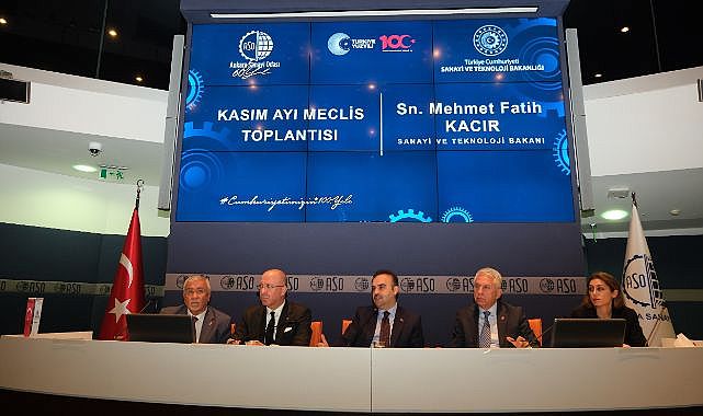 Ankara Sanayi Odası Kasım Ayı Meclis Toplantısı, Sanayi ve Teknoloji Bakanı Mehmet Fatih Kacır’ın katılımıyla yapıldı. ASO Başkanı Seyit Ardıç, sanayicilerin gündemini değerlendirdiği konuşmasında, “Sanayide teknoloji düzeyini ve verimliliği arttırmaya ihtiyacımız var. Yeşil dönüşümü ve dijital dönüşümü gerçekleştirmemiz gerekiyor” dedi